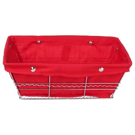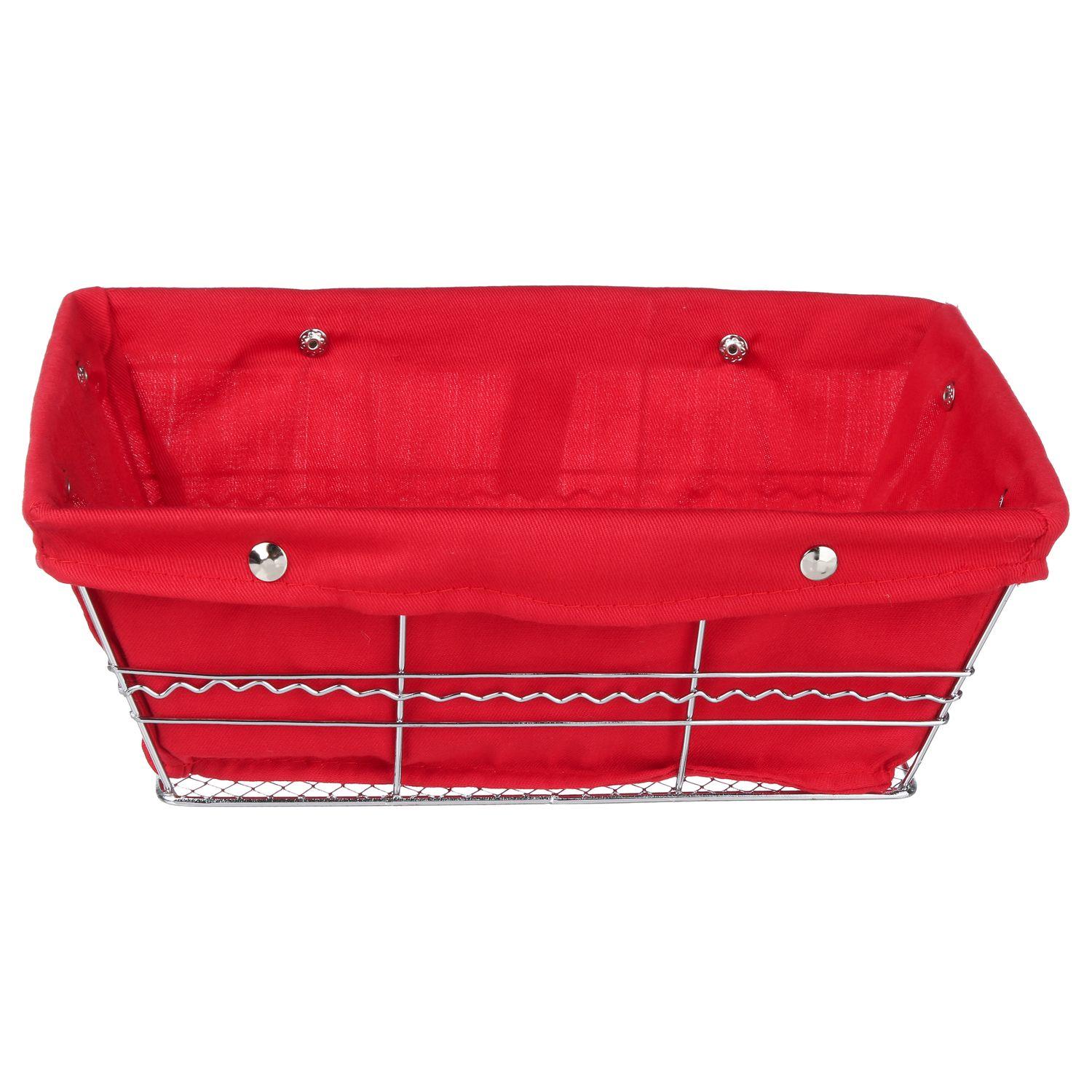 Idéale pour présenter votre pain durant vos repas, optez pour notre panière à pain en métal et coton.FICHE TECHNIQUE- Panière à pain rectangulaire.- Matière : Structure en métal et tissu en coton.- Couleur : Rouge.CARACTERISTIQUES TECHNIQUES- Dimensions : Longueur 26,5 cm x Profondeur 20,5 cm x Haut