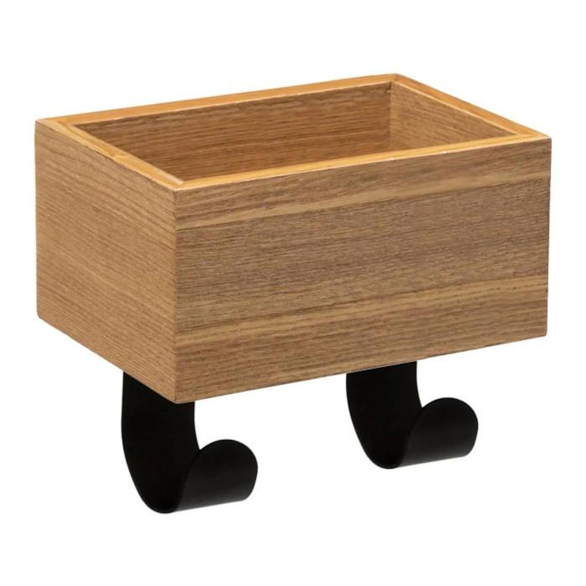 Patère 2 Crochets Vide-Poche 20cm Noir & Naturel