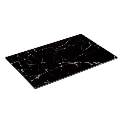 Informations Techniques : Dimensions : L. 30 x l. 20 x H. 0,4 cm Matière : Verre Spécificités : Pratique & Polyvalente Planche à découper Effet marbre Anti-rayures Résistante à la chaleur & aux chocs 4 en 1 : couper, cuisiner, servir & poser Forme rectangulaire Poids : 0,56 kg Couleur : Noir