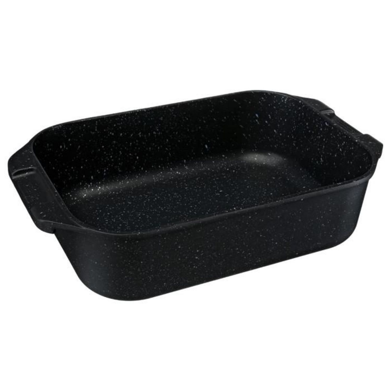 Informations Techniques : Dimensions : L. 40,5 x l. 25,5 x H. 10 cm Matière : Aluminium Spécificités : Manche toucher confort Diffusion rapide de la chaleur Haute résitance aux rayures Revêtement aspect pierre Compatible tous feux y compris induction Entretien facile Poids : 1,3 kg Couleur : Noir