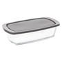 Informations Techniques : Dimensions : : L. 27 x l. 14 x H. 7,20 cm Matière : Verre Spécificités : Pratique Couvercle refermable Lave vaisselle : Oui sauf couvercle Micro onde : Oui sauf couvercle Four : Oui sans couvercle Poids : 0,820 kg Couleur : Transparent