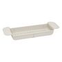 Informations Techniques : Dimensions : L. 55-78 x l. 17 x H. 8,5 cm Matière : Polypropylène Spécificités : Pratique & Fonctionnel Plateau pour baignoire Extensible de 55 à 78 cm Poids max supporté : 2 kg Poids : 0,51 kg Couleur : Gris