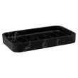 Informations Techniques : Dimensions : L. 19 x l. 11 x H. 2,5 cm Matière : Plastique Spécificités : Pratique & Utile Plateau de Rangement Forme Rectangulaire Design effet Marbre Poids : 0,365 kg Couleur : Noir