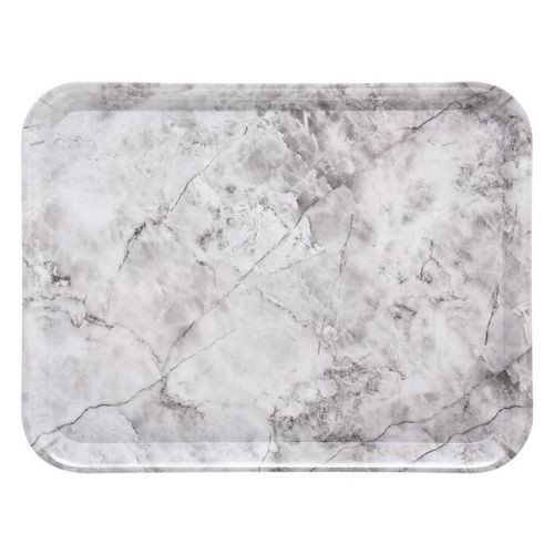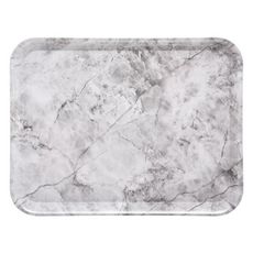 Informations Techniques : Dimensions : L. 43 x l. 33 x H. 1,7 cm Matière : Mélamine Spécificités : Design & Tendance Plateau de service Motif Marbre Facile d'utilisation & d'entretien Poids : 0,495 kg Couleur : Blanc