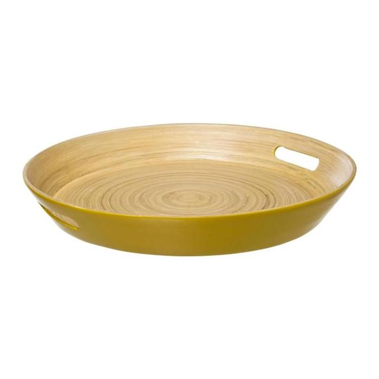 Plateau Rond en Bambou Modern 42cm Moutarde
