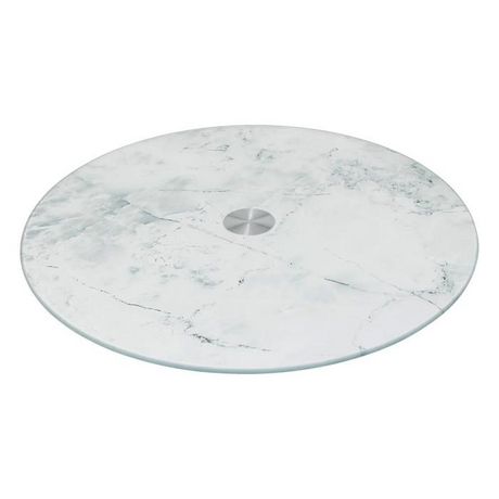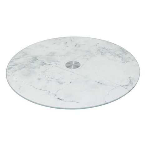 Plateau Tournant en Verre Effet Marbre 31cm Blanc