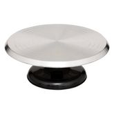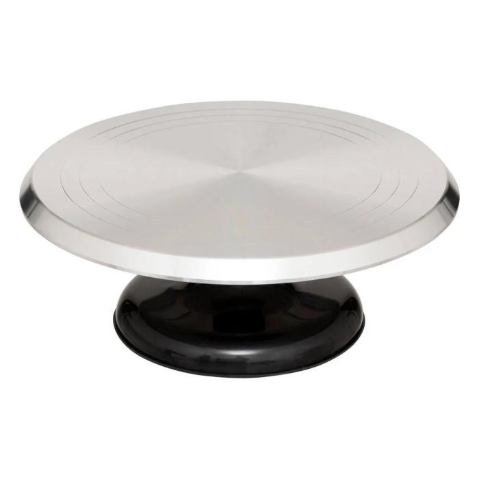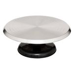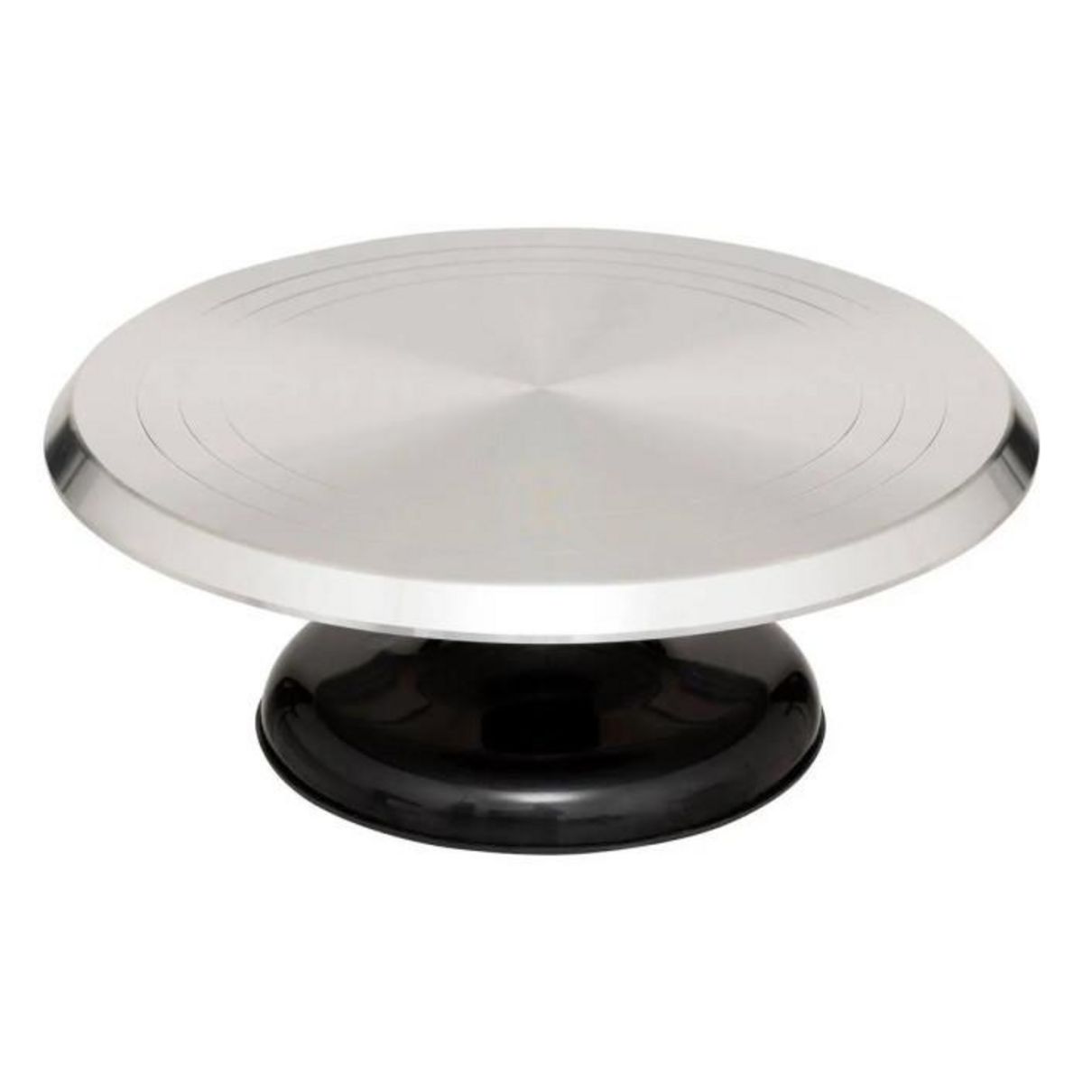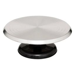 Informations Techniques : Dimensions : D. 31 x H. 11,7 cm Matières : Polypropylène & Aluminium Spécificités : Pratique & Fonctionnel Plateau tournant pour gâteau Avec rebord Rotation à 360° Grand format Pied antiadhérent Poids : 1,1 kg Couleur : Argent