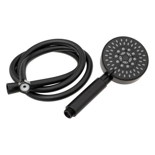 Informations Techniques : Dimensions : L. 10 x l. 3,5 x H. 23 cm Matières : PVC & ABS Spécificités : Fonctionnel & Pratique Pomme de douche flexible de 150 cm 5 fonctions (pluie, massage, pluie + massage, spray & spray + pluie) Poids : 0,3 kg Couleur : Noir