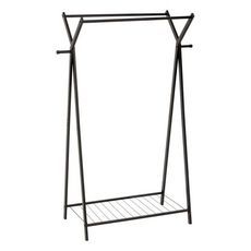 Informations Techniques : Dimensions : L. 98 x l. 43,5 x H. 145 cm Barre de suspension : L. 75 cm Matière : Acier Spécificités : Pratique & Utile Portant à vêtements Double barre de suspension 2 patères avec stoppeur Étagère de rangement Grande capacité À monter soi-même Poids max supporté : 49 kg P