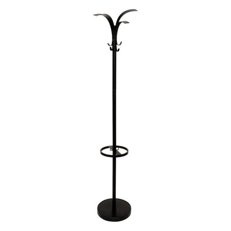 Informations Techniques : Dimensions : D. 32 x H. 175,2 cm Matière : Acier Spécificités : Pratique & Solide Porte-manteaux 8 tiges arrondies Support et crochets pour parapluie Base large stable et robuste À monter soi-même Poids max supporté : 36 kg Poids : 9,3 kg Couleur : Noir