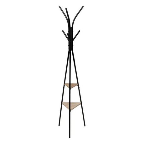 Informations Techniques : Dimensions : L. 40 x l. 40 x H. 175 cm Matières : Métal & MDF Spécificités : Pratique & Moderne Porte-manteaux 6 têtes Avec 2 étagères À monter soi-même Poids max supporté : 16 kg Poids : 2,9 kg Couleur : Noir & Naturel