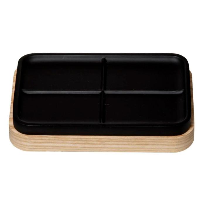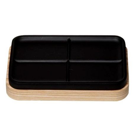 Informations Techniques : Dimensions : L. 13,2 x l. 8,6 x H. 2,7 cm Matière : Polyrésine Spécificités : Pratique & Déco Porte savon design Forme rectangulaire Poids : 0,21 kg Couleur : Noir & Naturel