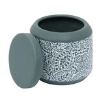 Informations Techniques : Dimensions : D. 10 x H. 10,4 cm Matière : Dolomite Spécificités : Pratique & Déco Pot à coton Avec couvercle Imprimé végétal Poids : 0,44 kg Couleur : Vert