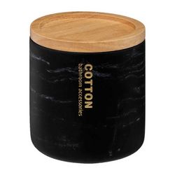 Informations Techniques : Dimensions : D. 9,8 x H. 10,9 cm Matières : Bambou & Plastique Spécificités : Pratique & tendance Pot à Coton Forme Ronde Revêtement effet Marbre Couvercle en Bambou Poids : 0,39 kg Couleur : Noir