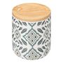 Informations Techniques : Dimensions : D. 9,8 x H. 11,2 cm Matière : Dolomite Spécificités : Déco & Utile Pot à coton rond Imprimé ethnique Avec couvercle Poids : 0,4 kg Couleur : Multicolore