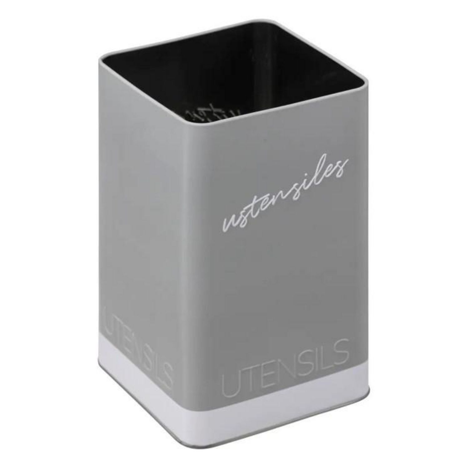 Informations Techniques : Dimensions : L. 10,5 x l. 10,5 x H. 18,5 cm Matière : Métal Spécificités : Pratique & Utile Pot à ustensiles Inscription ustensiles Poids : 0,19 kg Couleur : Gris Clair