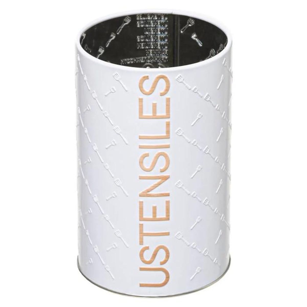 Informations Techniques : Dimensions : D. 11 x H. 17,5 cm Matières : Fer & Etain Spécificités : Pratique & Utile Pot à Ustensiles Forme Ronde Style Scandinave Poids : 0,11 kg Couleur : Blanc