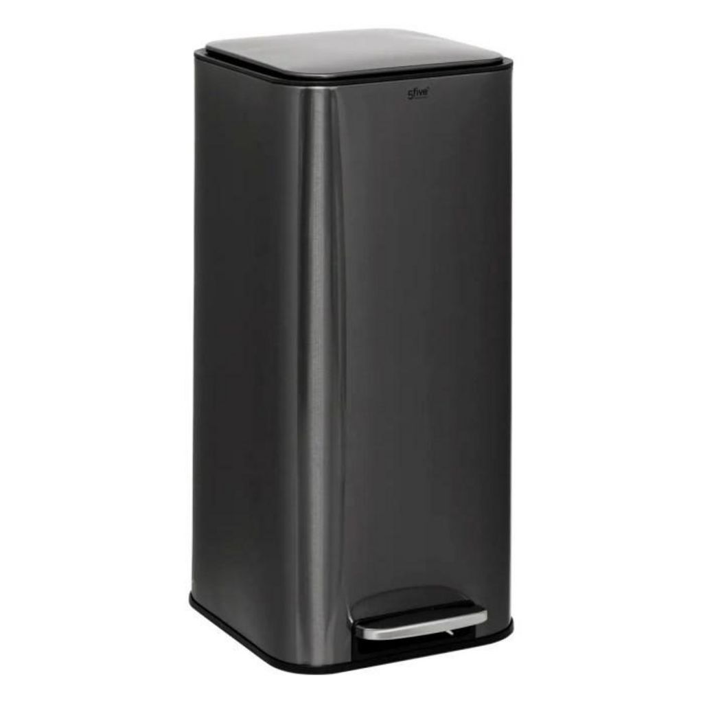 Informations Techniques : Dimensions : L. 35,5 x l. 29 x H. 63 cm Matières : Acier & Polypropylène Spécificités : Pratique & Utile Poubelle carrée à pédale Seau amovible Couvercle plat Ouverture à 90° Filtre à charbon actif Fermeture douce sans bruit Fixation du sac poubelle Nettoyage facile Sac con