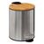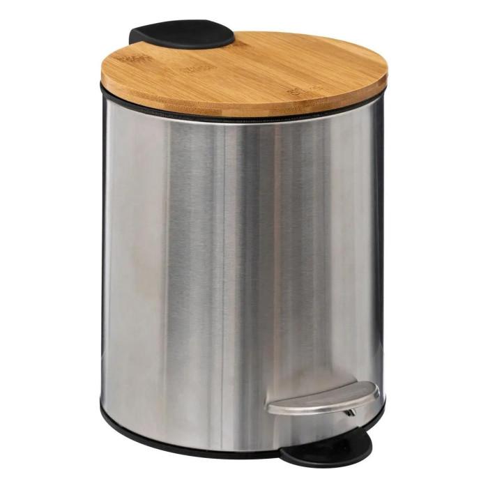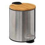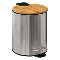 Informations Techniques : Dimensions : L. 22,5 x l. 17 x H. 23 cm Matières : Fer, Bambou & Polypropylène Spécificités : Pratique & Utile Poubelle de Salle de Bain Forme Ronde Softclose Fermeture Silencieuse Contenance : 3 L Poids : 0,573 kg Couleur : Argent & Naturel