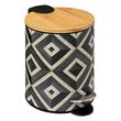 Informations Techniques : Dimensions : D. 17 x H. 22,5 cm Matières : Polypropylène, Bambou & Métal Spécificités : Pratique & Utile Poubelle à pédale Imprimé losange Couvercle en bambou Fermeture douce Capacité : 3 L Poids : 0,65 kg Couleur : Multicolore