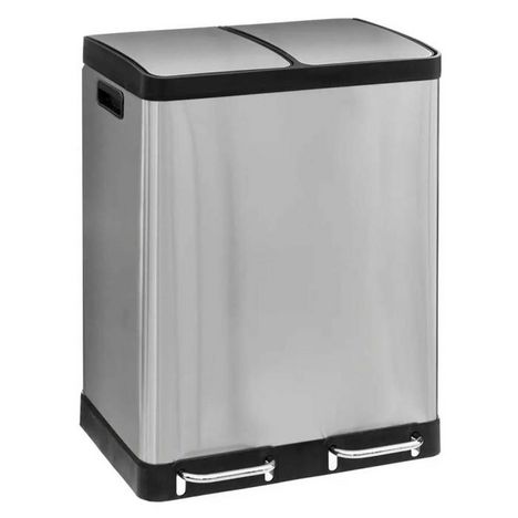 Informations Techniques : Dimensions : Fermée : L. 48,1 x l. 38,2 x H. 67,2 cm Ouverte : L. 48,1 x l. 38,2 x H. 96 cm Pédale : l. 14,5 cm Matières : Acier Inoxydable & Polypropylène Spécificités : Pratique & Utile Poubelle de tri de cuisine Corps en inox 2 Bacs & 2 Pédales 2 Seaux amovibles indép