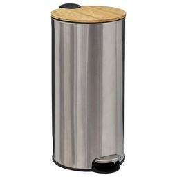 Poubelle en Métal & Bambou Natureo 30L Argent