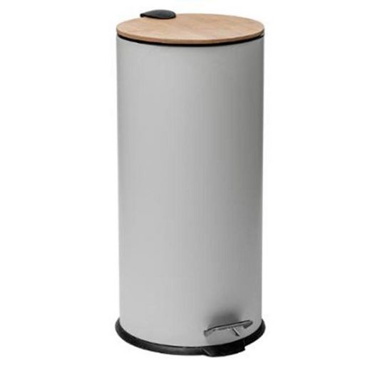 Poubelle en Métal & Bambou Natureo 30L Blanc
