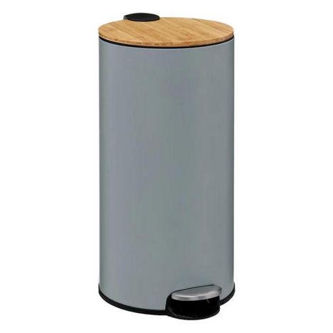 Poubelle en Métal & Bambou Natureo 30L Gris