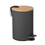 Informations Techniques : Dimensions : D. 17 x H. 24 cm Matière : Métal Spécificités : Design & Tendance Capacité : 3 L Poubelle de Salle de Bain Système de fermeture Soft Close Poids : 0,618 kg Couleur : Naturel & Gris