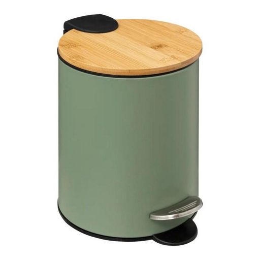 Informations Techniques : Dimensions : D. 17 x H. 24 cm Matière : Métal Spécificités : Design & Tendance Capacité : 3 L Poubelle de Salle de Bain Système de fermeture Soft Close Poids : 0,618 kg Couleur : Naturel & Kaki