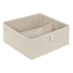 Informations Techniques : Dimensions : L. 24 x l. 25 x H. 10,2 cm Matières : Polyester, Polypropylène & Carton Spécificités : Pratique & Utile Rangement pour tiroir Avec 2 compartiments Gain de place Poids : 0,13 kg Couleur : Beige