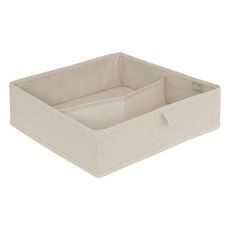 Informations Techniques : Dimensions : L. 36 x l. 36 x H. 10 cm Matières : Polyester & Polypropylène Spécificités : Pratique & Utile Rangement pour tiroir Avec 2 compartiments Gain de place Poids : 0,19 kg Couleur : Beige