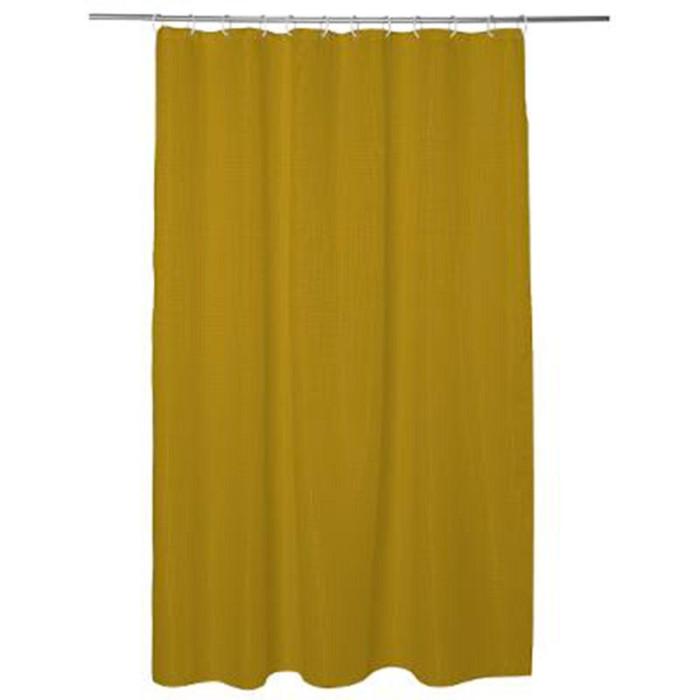 Informations Techniques : Dimensions : L. 180 x l. 0,1 x H. 200 cm Matière : Polyester Spécificités : Pratique & Utile Rideau de Douche Forme Rectangulaire 12 Anneaux inclus Lavage en machine à 30° Grammage : 85-90g/m2 Grammage : 120gsm Poids : 0,535 kg Couleur : Moutarde