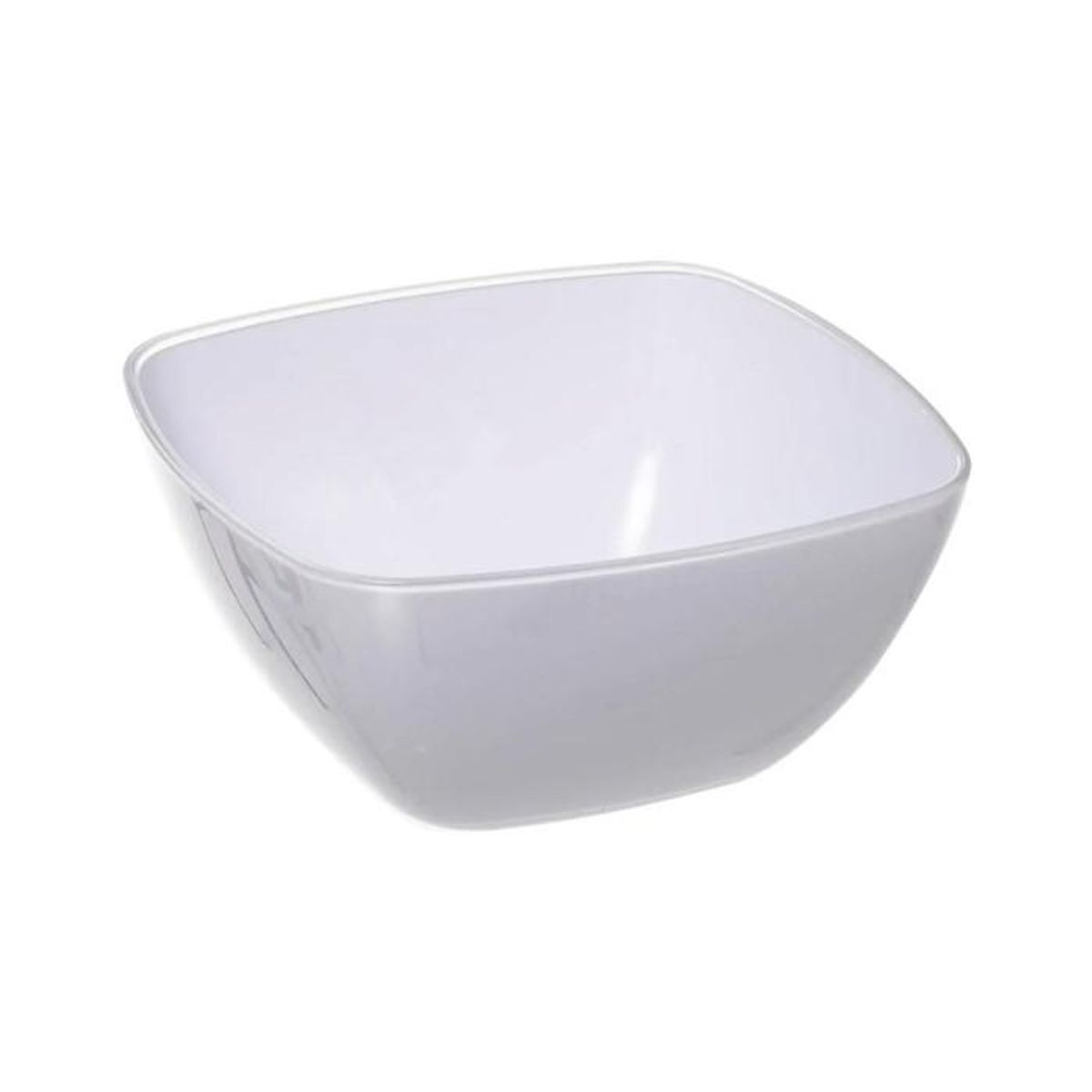 Informations Techniques : Dimensions : L. 13,9 x l. 13,9 x H. 6,6 cm Matière : Polystyrène Spécificités : Pratique & Réutilisable Saladier carré uni Passage au lave-vaisselle Contenance : 60 cl Poids : 0,11 kg Couleur : Blanc