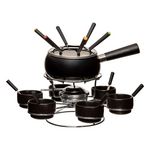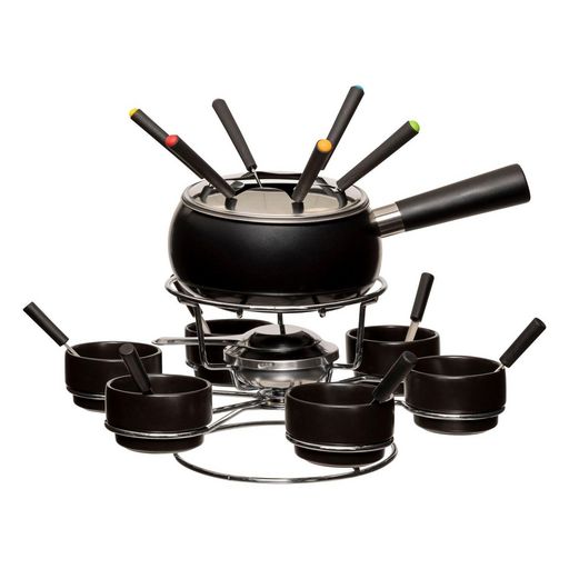 Ce service à fondue complet permet de partager des moments chaleureux autour d'une fondue savoureuse. Il comprend un caquelon en fonte avec revêtement antiadhésif, un support rotatif métallique, un brûleur réglable et six fourchettes dotées de repères colorés pour une identification facile. Le caquelon assure une répartition homogène de la chaleur, idéal pour le fromage, le chocolat ou la viande. Utilisable avec de la pate à combustible (non incluse), il s'intègre parfaitement à une table conviviale. Facile à utiliser et à entretenir, ce set à fondue est conçu pour une expérience gourmande en toute simplicité.