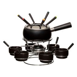 - Le service à fondue contient 6 fourchettes, 6 cuillères et 6 ramequins