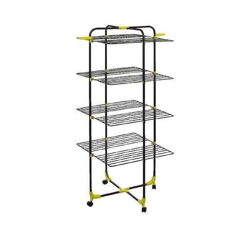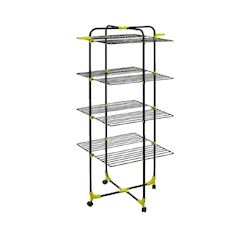 Découvrez l'étendoir à linge modulable tour Mojave de la marque 5-five-simply-smart. Avec des dimensions de 68 x 68 x 168 cm et une capacité d'étendage de 40 mètres, cet étendoir est idéal pour un usage intérieur. Sa structure en métal assure une bonne robustesse tandis que ses quatre roulettes en p