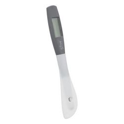 Informations Techniques : Dimensions : L. 4,2 x l. 2 x H. 24,5 cm Matières : Polystyrène & Silicone Spécificités : Pratique & Déco Spatule de Cuisine Thermomètre inclus Contact Alimentaire Fonctionne à Pile (1 x LR44 incluse) Poids : 0,065 kg Couleur : Anthracite