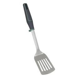 Informations Techniques : Dimensions : L. 8 x l. 4,4 x H. 35 cm Matières : Acier Inoxydable & Polypropylène Spécificités : Ergonomique & Utile Spatule en inox Avec anneau de maintien Manche revêtement doux Poids : 0,13 kg Couleur : Gris