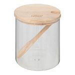 Informations Techniques : Dimensions : D. 8,6 x H. 11 cm Matières : Verre & Bois (Acacia) Spécificités : Pratique & Utile Sucrier avec cuillère Couvercle en bois FSC Capacité : 0,4 L Poids : 0,16 kg Couleur : Transparent & Naturel