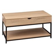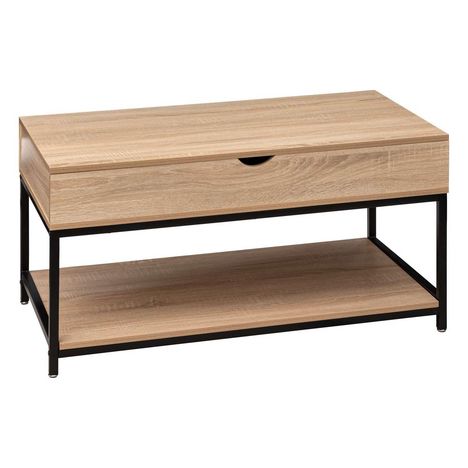 Cette table basse avec plateau relevable est à la fois esthétique, fonctionnelle et idéale pour les petits espaces. Son design ingénieux cache un coffre de rangement spacieux sous le plateau, permettant d'organiser et de ranger facilement des objets tels que des télécommandes, des magazines, ou des plaids. Le mécanisme relevable du plateau vous permet de transformer la table en un espace de travail ou de repas, tout en gardant style intemporelle avec sa finition effet chêne naturel.