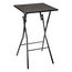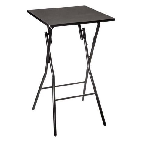 Informations Techniques : Dimensions : L. 60 x l. 60 x H. 102,5 cm Matières : MDF & Métal Spécificités : Pratique & Utile Table de Bar Pliante Forme Carrée Structure Résistante Se Glisse facilement contre un Meuble ou derrière une Porte Poids : 7,3 kg Couleur : Noir