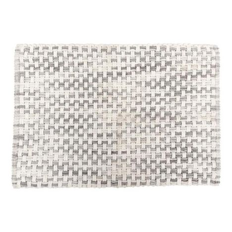 Informations Techniques : Dimensions : L. 75 x l. 50 x H. 2 cm Matières : Polyester & Coton Spécificités : Doux & Moelleux Tapis de bain rectangulaire Design tressé dégradé Lavable en machine à 30° Poids : 0,66 kg Couleur : Gris