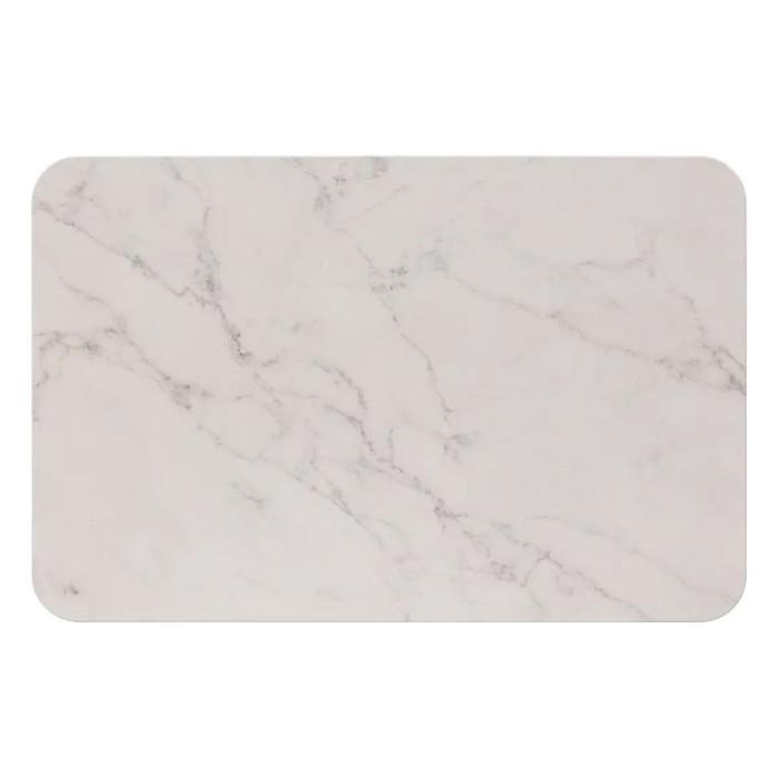 Informations Techniques : Dimensions : L. 60 x l. 39 x H. 0,9 cm Matière : Argile Spécificités : Déco & Tendance Tapis de salle de bain Imprimé marbre Ultra-absorbant & antidérapant Forme rectangulaire Facile à nettoyer Poids : 2,08 kg Couleur : Blanc
