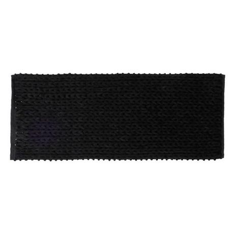 Informations Techniques : Dimensions : L. 120 x l. 2 x H. 50 cm Matière : Polyester Spécificités : Pratique & Utile Tapis de Salle de Bain Forme Rectangulaire Tissé à la Main Design Uni Texture Épaisse GSM : 2450 Poids : 1,535 kg Couleur : Noir Khôl