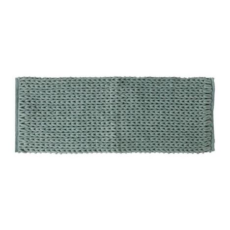 Informations Techniques : Dimensions : L. 120 x l. 2 x H. 50 cm Matière : Polyester Spécificités : Pratique & Utile Tapis de Salle de Bain Forme Rectangulaire Tissé à la Main Design Uni Texture Épaisse Format spécial double-vasques Lavable en machine (30°C) GSM : 2450 Poids : 1,4 kg Couleur : Vert