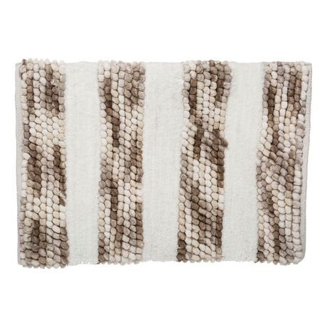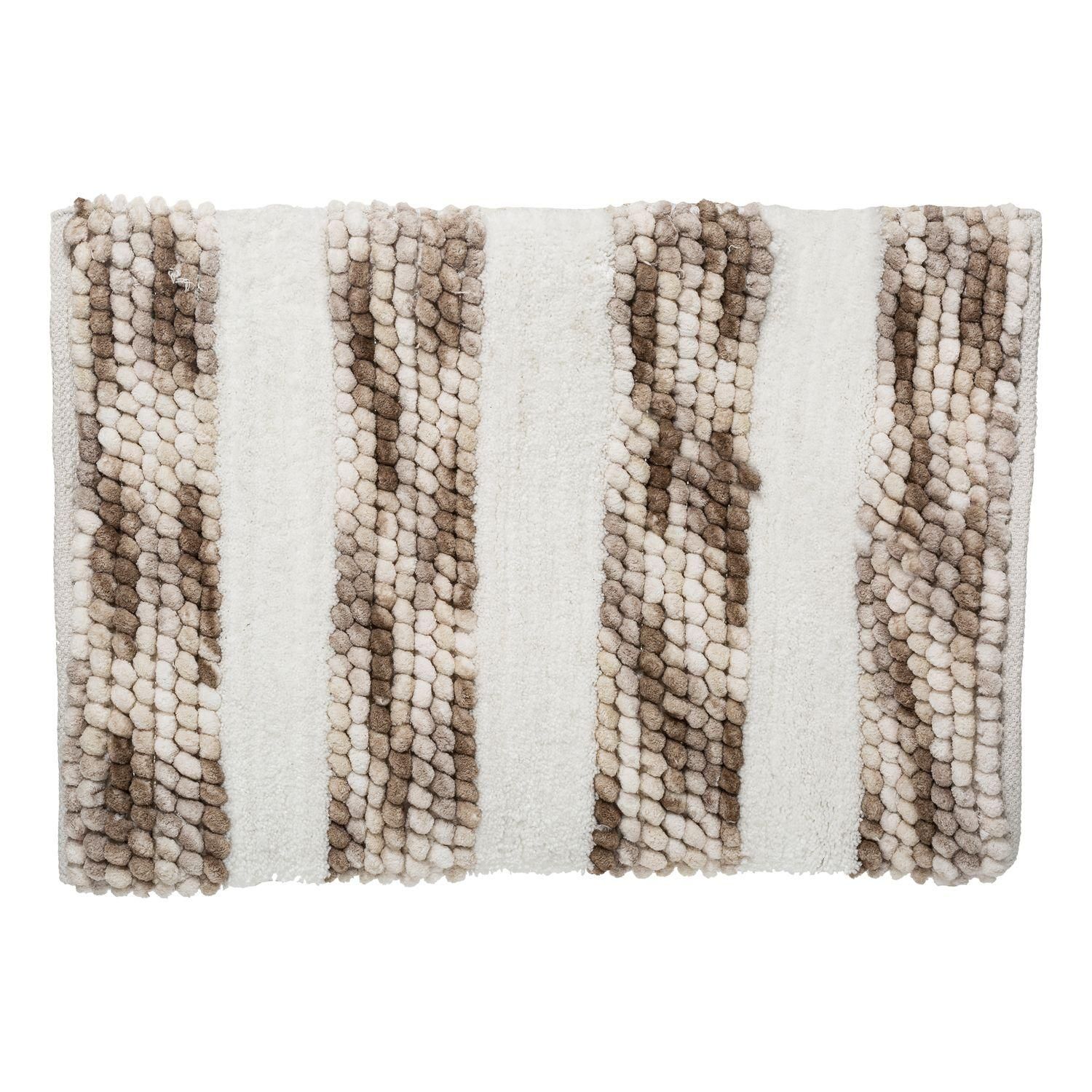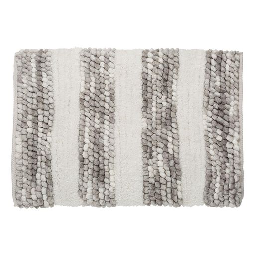 Notre tapis sera idéal pour ajouter une touche de confort à votre salle de bain.FICHE TECHNIQUE- Tapis de salle de bain.- Grammage de 2300 gsm.- Couleur : Crème et Gris.- Détails : tissage rayé.- Matière : Polyester.CARACTERISTIQUES TECHNIQUES- Dimensions : Longueur 75 cm x Largeur 50 cm x Epaisseur