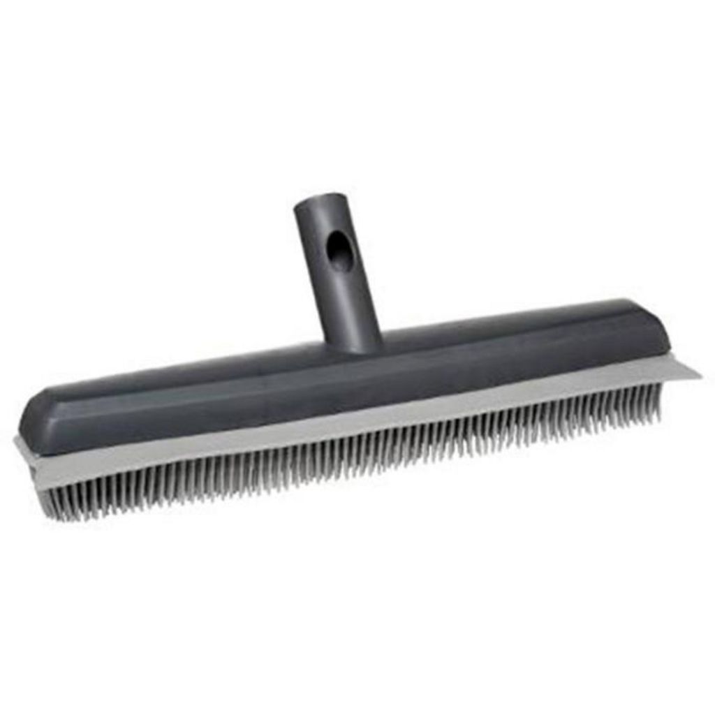 Informations Techniques : Dimensions : L. 13 x l. 7 x H. 33,5 cm Matière : Polypropylène Spécificités : Utile & Pratique Tête de Balai rubber 2 en 1 Plus hygiénique et résistant, il retient facilement poils et cheveux Avec raclette de finition Tous types de sols, tapis, moquettes Couleur : Gris