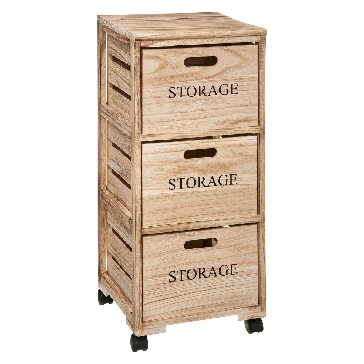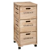 Tour de rangement 3 tiroirs à roulettes en bois HERSTIA - Beige