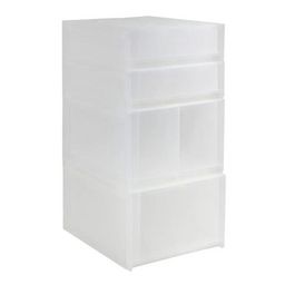 Informations Techniques : Dimensions : L. 29 x l. 38 x H. 62,4 cm Matière : Plastique Spécificités : Pratique & Utile Tour de rangement multi pièce Avec 4 tiroirs séparables et modulables Compatible format A4 Contient : 1 x tiroir de 13 L 2 x tiroirs de 5,5 L 1 x tiroir double compartiments de 6,5